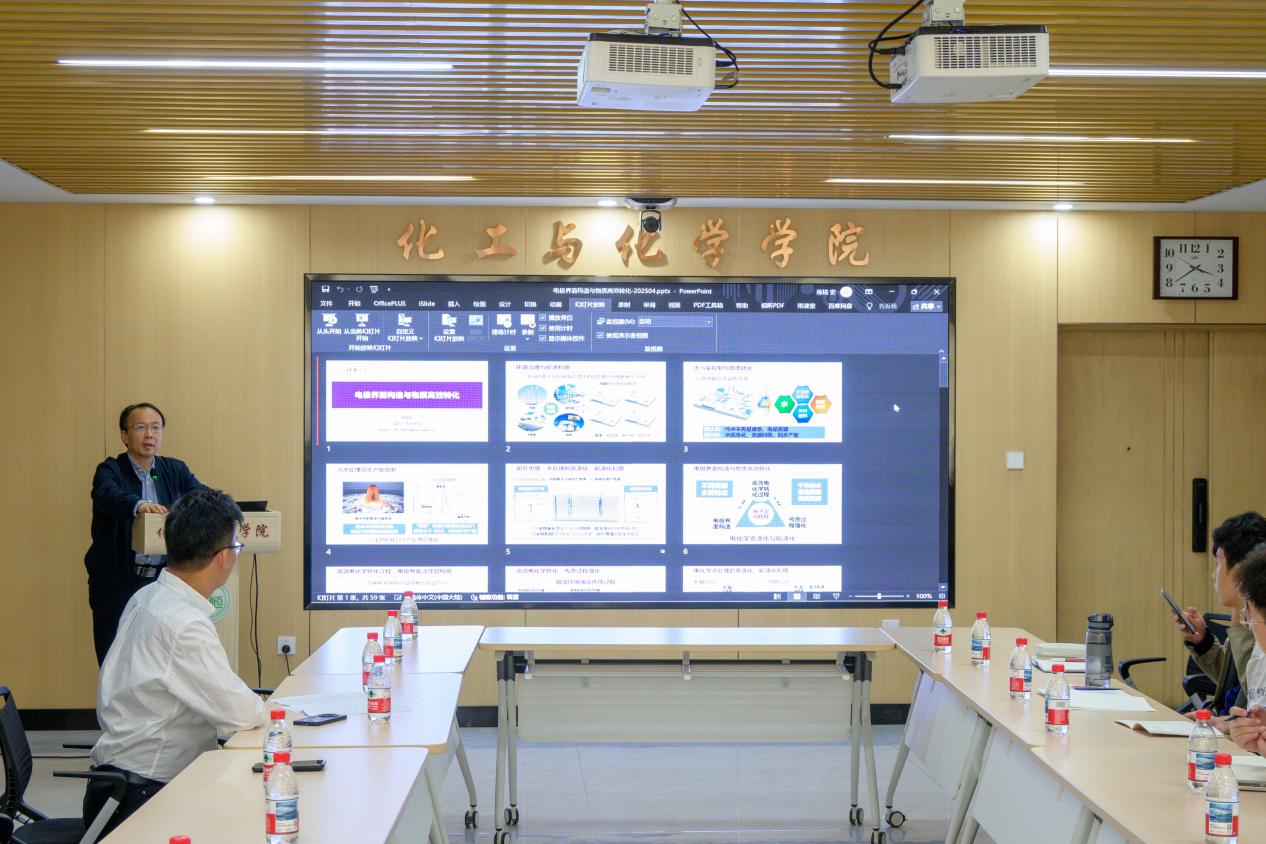 李景虹院士深耕分析化学、纳米化学领域,长期致力于化学生物学、电化学、能源化学等方向的前沿研究。在此次汇报中,李景虹院士聚焦清洁能源电化学技术,探索资源化回收的创新路径,为环境治理提供科学解决方案。李景虹院士的分享高屋建瓴,既有理论深度又有实践指导意义,拓宽了师生们电化学环境修复的新视野。