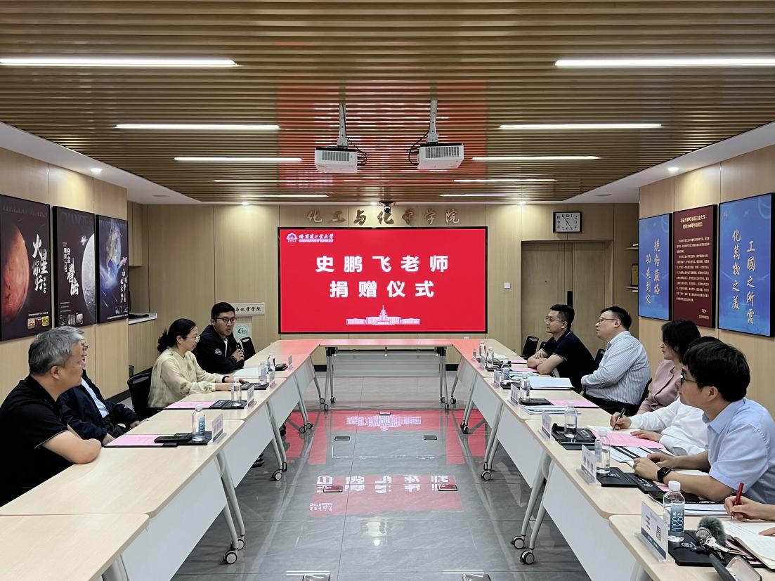 捐赠仪式在明德楼明理学术报告厅举行。史鹏飞教授,化工与化学学院院长吴晓宏、党委书记刘光惠及全体领导班子成员,电化学工程系教师代表马玉林、程新群、韩国康等参加会议。仪式由刘光惠主持。