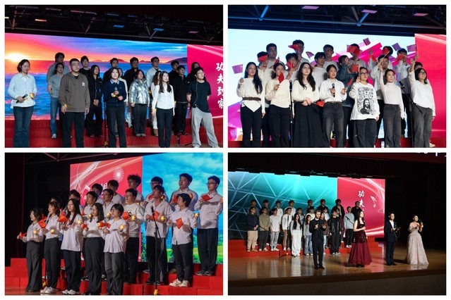 第三篇章“星光璀璨·共创明天”为活动画上了圆满句号。《夜空中最亮的星》,用歌声传递对梦想的执着与追寻。《咱老百姓》和《浮游》,以质朴与灵动的风格展现生活百态与自由追求。小品《人生自古谁无死》,以深刻的立意引发观众对生命价值与担当的思考。诗朗诵《最美的太阳》,用深情语调歌颂奉献与温暖。最后《我和我的祖国》《灯火里的中国》和《明天会更好》三首合唱依次登场,从家国情怀到未来期许,将活动氛围推向高潮,全场在歌声中共同展望共创明天的美好图景。