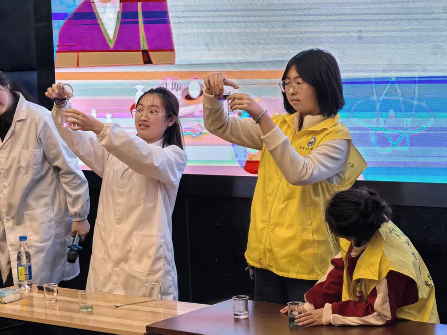 11月16日,化工与化学学院师生与全国道德模范郭明义及其爱心团队座谈交流,随后在鞍钢博物馆为当地七十余名中小学生带来了一场精彩的化学科普盛宴。赵蕾老师以“九天揽月去,一‘袋’护壤归”为题,介绍了化工在航天领域的突出贡献,深入浅出地讲解了化学基本原理和在月球采样任务中化工发挥的关键作用。在学生志愿者的指导下,孩子们亲手操作“荧光鲁米诺”、“魔法变色信号灯”、“茶水墨水大变身”等安全有趣的化学实验。在亲身体验化学魅力的过程中,探索科学的种子在孩子们心中悄然生根发芽。同期,化工与化学学院与鞍钢博物馆共同举行“学雷锋思政育人课堂”揭牌仪式,校地合作在科普教育与思政育人领域迈出了坚实一步。