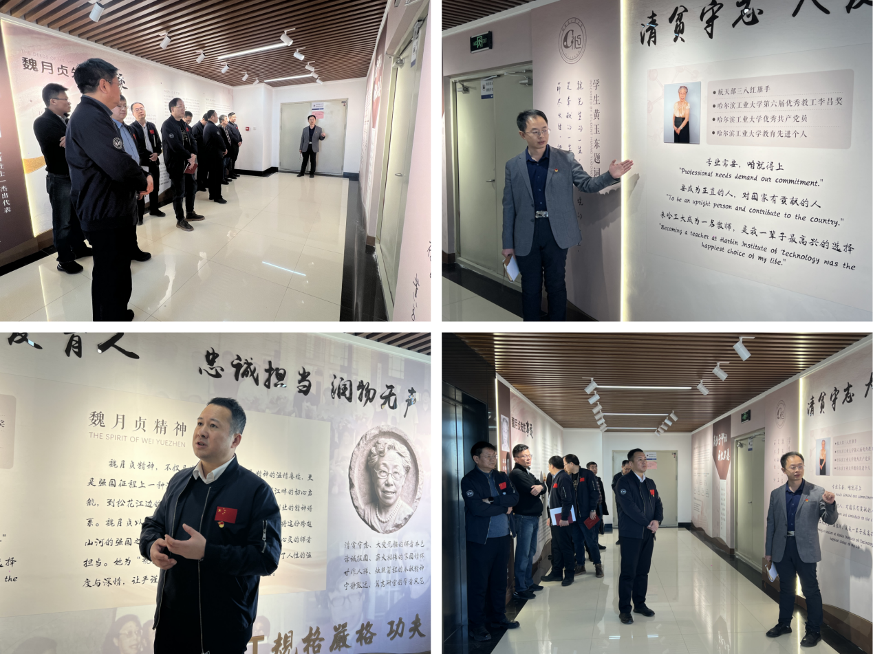 述职结束后,全体院领导、党委委员、支部书记移步至学院 “高分子印记 薪火不息”见学点参观学习,高分子科学与工程系教工党支部书记黎俊为大家讲解高分子专业奠基人、哈工大“八百壮士”魏月贞先生“清贫守志 大爱无疆”的感人事迹与崇高精神。