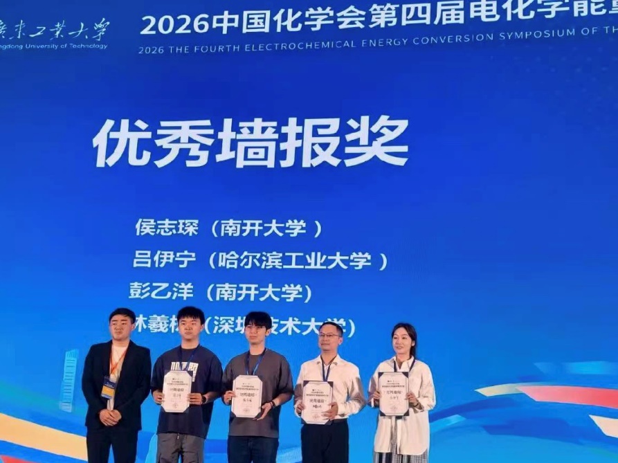 近日,由中国化学会电化学专业委员会与广东工业大学联合主办的“2026中国化学会第四届电化学能量转换研讨会”在广州圆满落幕。哈尔滨工业大学化工与化学学院博士研究生吕伊宁(导师:甘阳教授)凭借其在高性能全固态钠金属电池界面工程方面的创新研究成果,从众多优秀青年学者中脱颖而出,荣获大会 “最佳墙报奖”(仅4人获奖)。