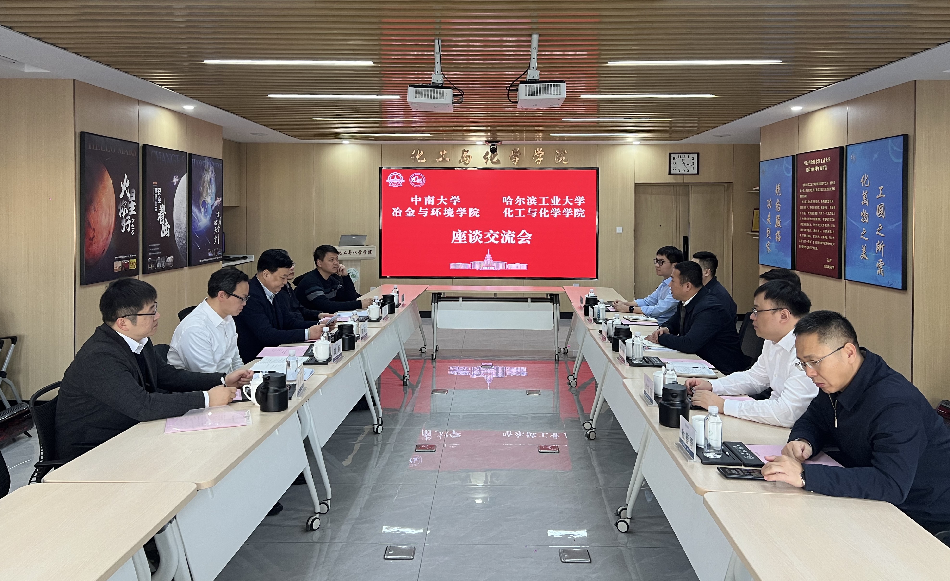 1月9日,中南大学冶金与环境学院党委书记成琼文、院长赖延清,副院长刘恢、刘芳洋、宗传鑫一行莅临我院调研交流。双方在明理学术报告厅举行座谈交流会,化工与化学学院党委书记刘光惠,副院长胡桢,党委副书记孙永川,副院长卢松涛、娄帅锋出席会议,会议由刘光惠主持。会议现场成琼文介绍了冶金与环境学院的发展历程与战略规划。他指出,冶金与环境学院始终面向国家可持续发展重大需求,深度融合学科前沿,扎实推进综合改革,致力于打造专业特色鲜明、综合实力卓越的世界一流学院。此次来访旨在学习借鉴化工与化学学院在“十五五”规划实施、学科交叉融合、高层次人才培养及产学研协同创新等方面的经验,探索两院在党建引领、学科建设、人才培养等领域的合作空间。刘光惠表示,化工与化学学院始终聚焦国家战略需求,服务国防航天等重大领域,强化学科交叉融合,在拔尖创新人才培养、重大科研产出突破及服务国家与区域发展方面已取得显著成效。冶金与环境学院优势特色鲜明,学院期待与其持续深化互学互鉴,以全国先进基层党组织建设为标杆,深化党建与业务融合,重点围绕国防航天领域,在拔尖创新人才培养、核心技术攻关与服务地方发展上深化协同,携手攻克关键核心技术,为