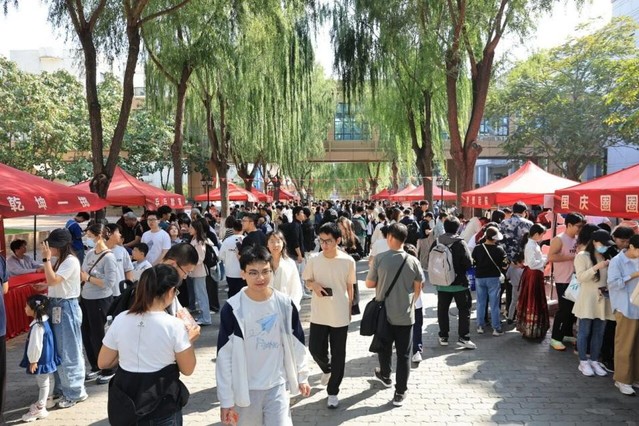 本次嘉年华设置14个国庆主题互动摊位,涵盖知识竞答、文化体验、趣味游戏等多种形式,吸引千余名师生热情参与。师生们通过互动体验感受传统文化,参与知识问答加深历史认知,在创意表达中抒发对祖国的祝福,展现出爱国情怀与青春活力,践行“强国有我”的青春誓言。