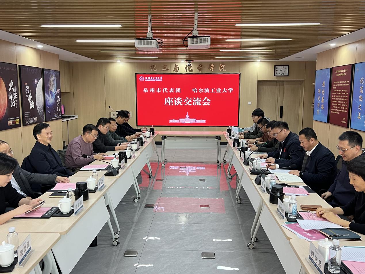 陈灿辉介绍了泉州市的产业发展现状与科技创新需求。他指出,泉州是经济活跃地区,拥有超千万人口,工业基础雄厚,形成纺织服装、机械制造、石油化工、电子信息、半导体、食品加工等九大千亿产业集群,产业韧性与升级潜力强。当前,泉州正推动传统产业升级与新兴产业发展,亟需高水平院校与科研机构支撑。他强调,泉州高度重视与哈工大合作,希望依托学院科研优势,共同攻克企业技术难题,推动关键核心技术攻关与成果在泉州转化。此次交流深化了对学院科研实力与专业的了解,明确了合作方向,希望以此次座谈为契机,建立常态化交流机制,推动项目尽快落地,实现校企资源共享、优势互补,共促区域科技创新与产业进步。
