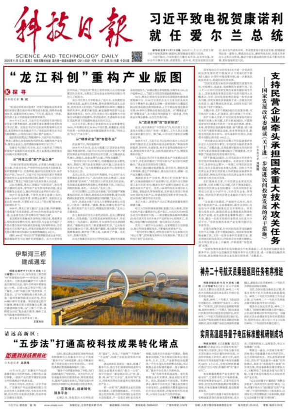 11月12日,《科技日报》在头版头条位置刊发专题报道,聚焦哈尔滨工业大学以科技创新驱动黑龙江产业转型升级的实践成效,并重点报道了我院袁国辉教授团队通过产学研协同创新实现技术成果转化的典型案例。