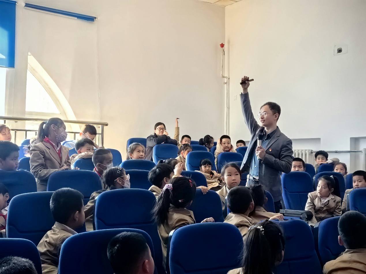 研讨结束后,黎俊为小学生们作了题为“嫦娥奔月:月面探测的中国人作为”的科普讲座。他从古老的嫦娥奔月传说切入,讲述了我国嫦娥工程的探索历程,并特别介绍了我校在探月工程中的科研贡献。讲座通过生动的语言、精彩的图片和动画,激发了孩子们对航天科学的浓厚兴趣。在现场互动环节,孩子们踊跃提问,黎俊老师一一耐心解答,并鼓励他们热爱科学、勤于思考、勇于探索。通过本次活动,科学的种子正在孩子们心中悄然播下。