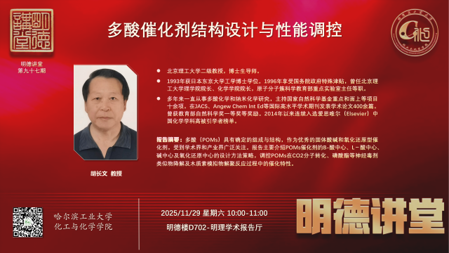 应杨玉林教授邀请,北京理工大学胡长文教授到我校进行学术访问,并开展化工与化学学院“明德讲堂”学术报告,欢迎广大师生参加。