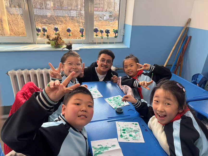 课堂上,志愿者讲师演示了“会冒泡的彩色画”和“茶水墨水大变身”两项精彩的化学实验,一边操作一边讲解实验原理。来自不同国家的学生志愿者共同走进孩子们中间,耐心引导他们动手操作,共同观察白醋与小苏打以及氯化铁与草酸、鞣酸等试剂反应时产生的奇妙变化。实验之余,国际学生志愿者们热情地向孩子们进行自我介绍,分享各自国家的风土人情。孩子们在欢声笑语中不仅感受到化学的神奇与魅力,更领略到多元文化的别样精彩。