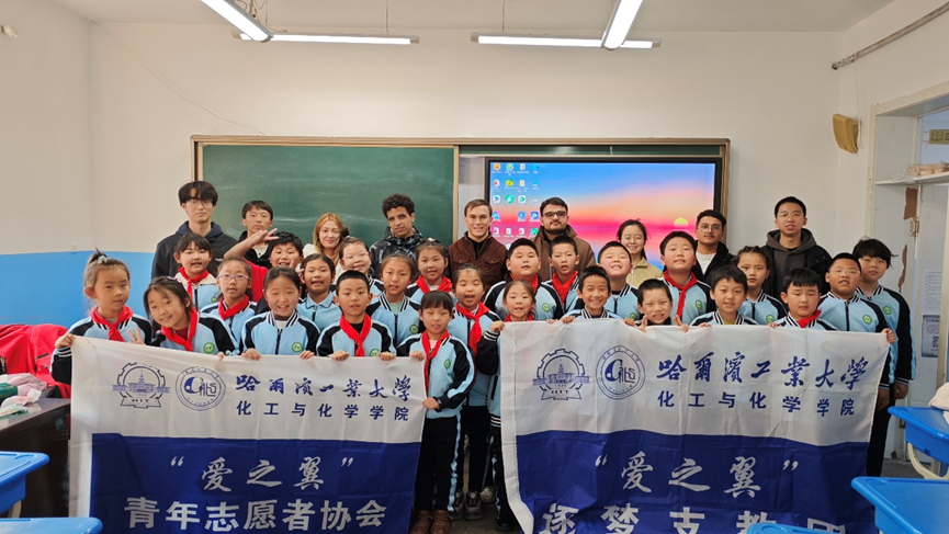 为弘扬“奉献、友爱、互助、进步”的志愿服务精神,帮助乡镇儿童开阔眼界、提升综合素质,推动“逐梦课堂”品牌项目持续深化。3月20日下午,化工与化学学院“爱之翼”青年志愿者协会组织中国学生及国际学生志愿者前往哈尔滨市幸福中心小学校,为孩子们带来了一堂别开生面的趣味化学实验课。