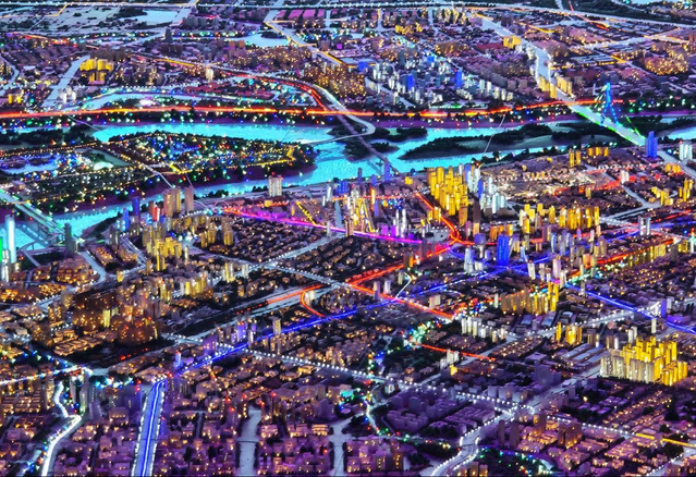 移步城市规划展区,1600㎡的巨型城市规划沙盘瞬间吸引所有人的目光,灯光亮起时,冰城的城市格局、交通路网、新区布局清晰地铺展眼前。