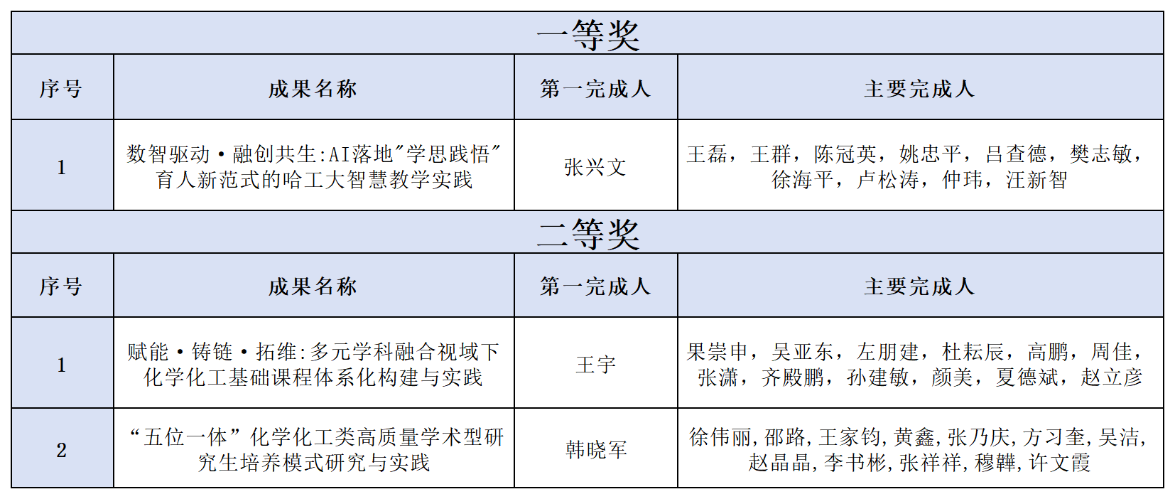 近日,黑龙江省教育厅发布了《关于公布2025年黑龙江省高等教育(本科、研究生)教学成果奖获奖名单的通知》,化工与化学学院再创佳绩,喜获省级教学成果奖一等奖1项、二等奖2项。