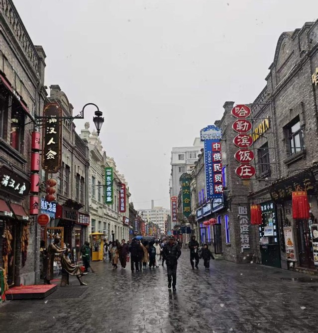 穿行在青砖墙、鲇鱼缝勾勒的街巷间,同学们驻足端详每一栋老建筑,从斑驳的墙面与精美的纹饰中,读懂20世纪初哈尔滨作为中东铁路枢纽,民族工商业者吸纳西方建筑艺术、坚守本土文化内核的创新精神。街区内的老字号商铺、特色院落与民俗文化展示,更让大家直观感受到老道外昔日的繁华烟火气,触摸到哈尔滨“东方小巴黎”“东方莫斯科”美誉背后,民族文化与外来文明碰撞融合的独特脉络。