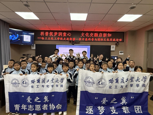 为弘扬“奉献、友爱、互助、进步”的志愿服务精神,进一步拓展乡镇儿童国际视野,提升科学素养,持续擦亮“逐梦课堂”志愿服务品牌。4月10日下午,化工与化学学院“爱之翼”青年志愿者协会携手国际学生志愿者,走进哈尔滨市新疆第一小学校,为孩子们带来了一堂融合异域风情与科学奥秘的特色课程。