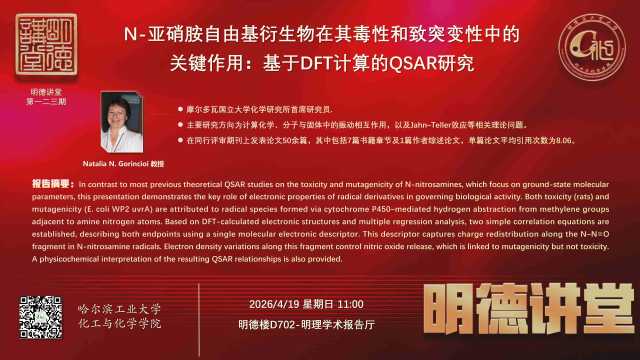 报告题目:N-亚硝胺自由基衍生物在其毒性和致突变性中的关键作用:基于DFT计算的QSAR研究(Key Role of Radical Derivatives of N-Nitrosamines in Their Toxicity and Mutagenicity: QSARs Based on DFT Calculations)