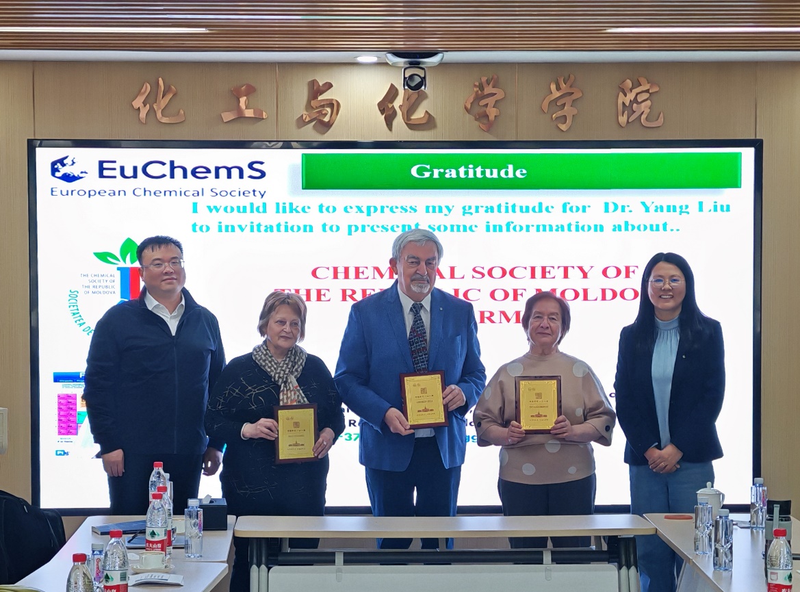 2026年4月19日上午,摩尔多瓦国家科学院院士Gheorghe Duca教授、摩尔多瓦国立大学Olga Covaliova教授及Natalia N. Gorincioi教授一行三人做客化工与化学学院“明德讲堂”,带来专题学术报告。化工与化学学院副院长卢松涛主持本次活动,来自化工与化学学院、航天学院的本硕博学生及留学生积极参会。